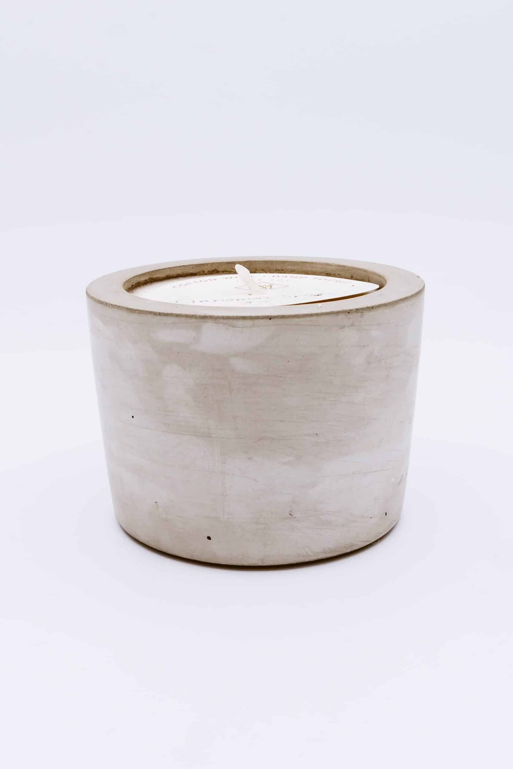 Hand cast and filled with 100% soy wax with zero additives. Candle holds eight ounces of wax for approximately 40 hours of burn time.