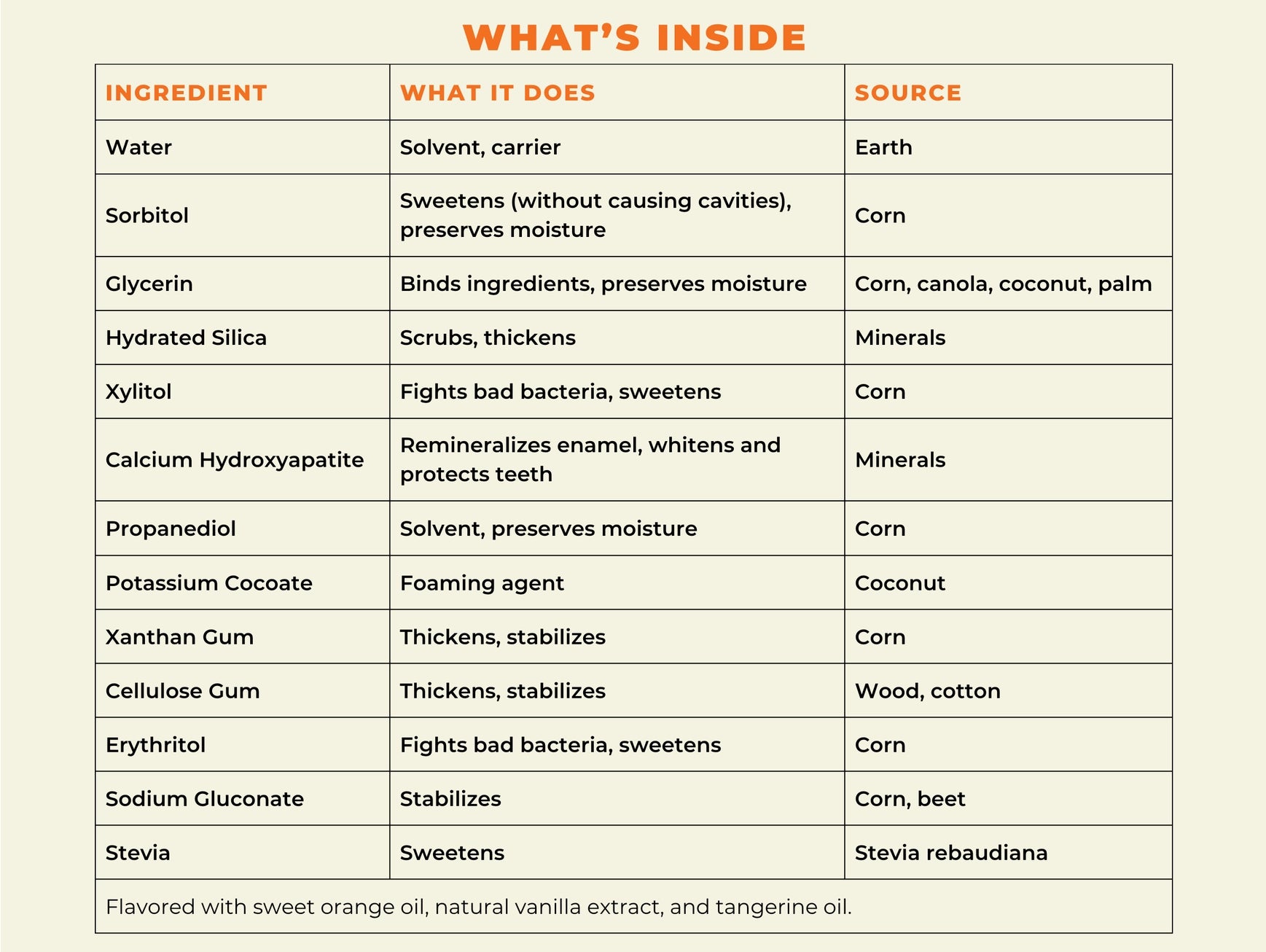 With 10% micro-hydroxyapatite, this formula rebuilds enamel, brightens teeth, and reduces sensitivity. The refreshing Sweet Orange flavor, made with natural citrus oils, appeals to both adults and children. Free from fluoride, sulfates, and artificial ingredients, it contains natural xylitol and calcium carbonate for cavity protection and effective cleaning.