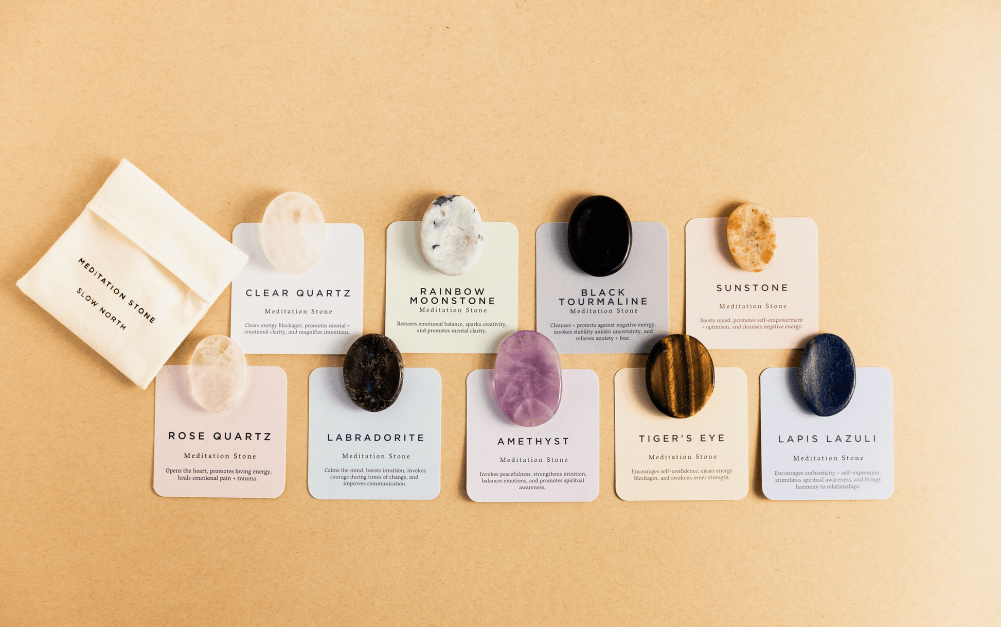 Includes a cotton pouch for safekeeping. Stones range in size from 1 ¼” to 1 ½”.