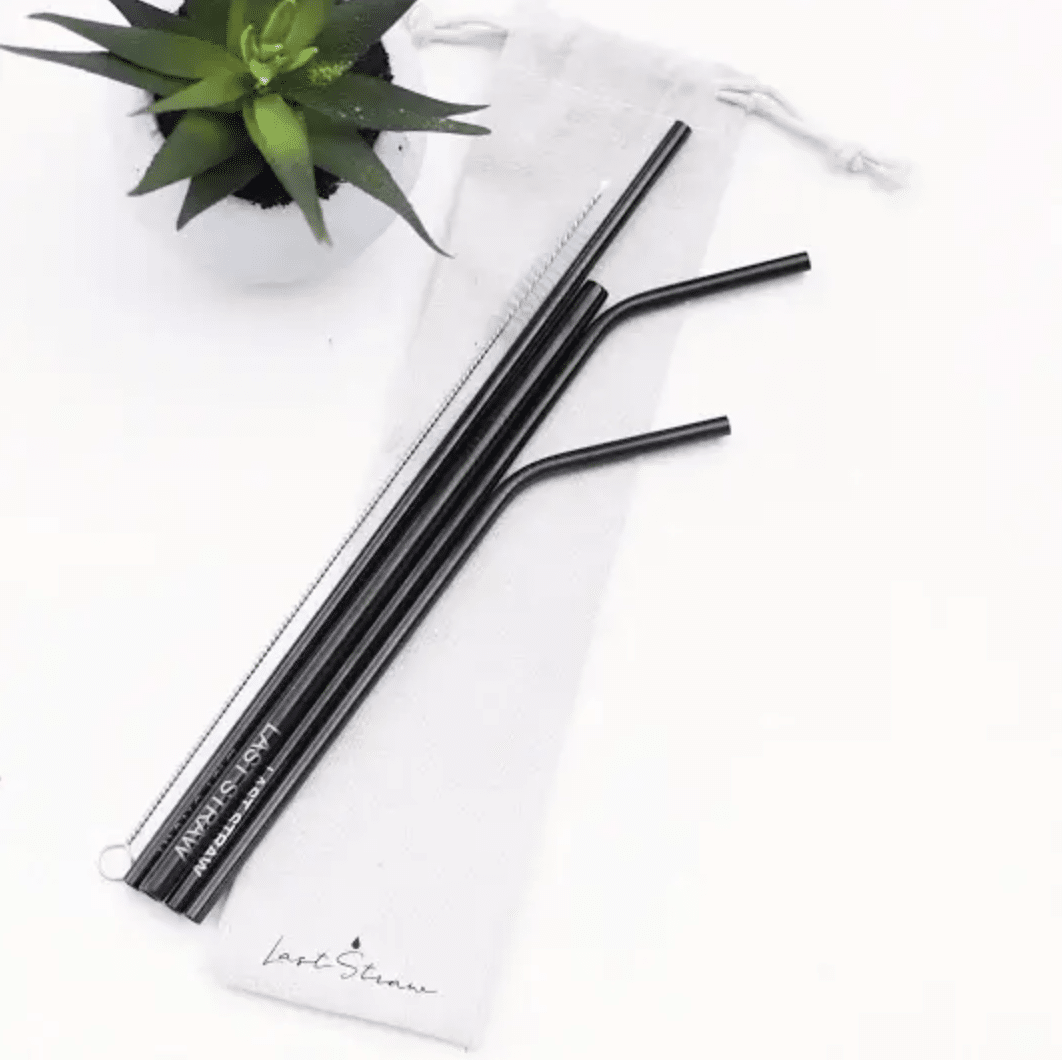 Each 6pc set contains a variety of sizes. Four eco- friendly, 100% recyclable, dishwasher safe straws, one cleaning tool and one drawstring linen straw pouch.